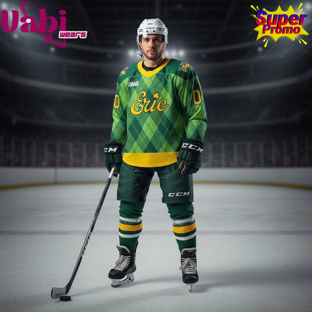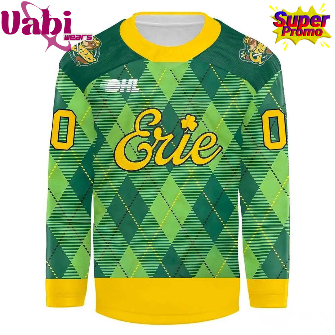 The Erie Otters St. Patrick’s Day 2026 Special Edition Hockey Jersey is a festive, limited-edition jersey perfect for celebrating the luck of the Irish with Erie hockey pride.