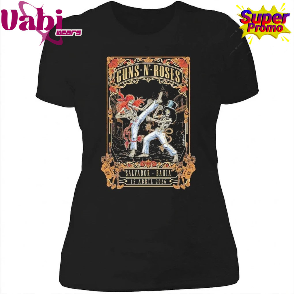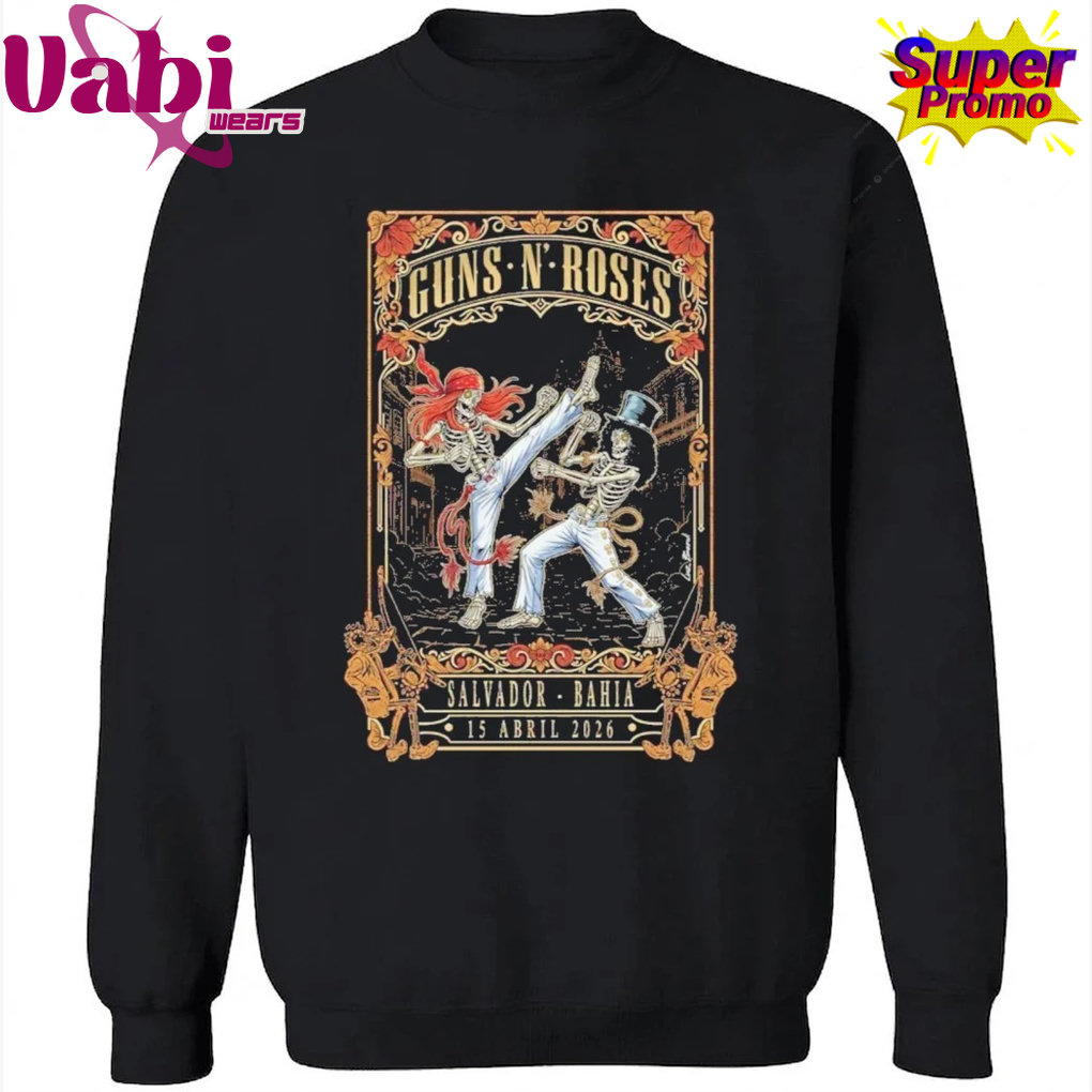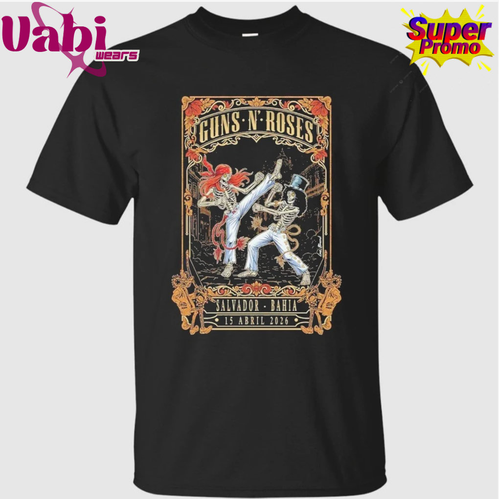 Available in a range of sizes, the Guns N’ Roses April 15, 2026 Salvador Event T-Shirt is not just a piece of merchandise; it’s a collector’s item for any true fan. Wear it with pride and join the celebration of one of rock’s most enduring legacies. Don’t miss your chance to own a piece of rock history—grab your t-shirt today and get ready to rock out to the sounds of Guns N’ Roses!