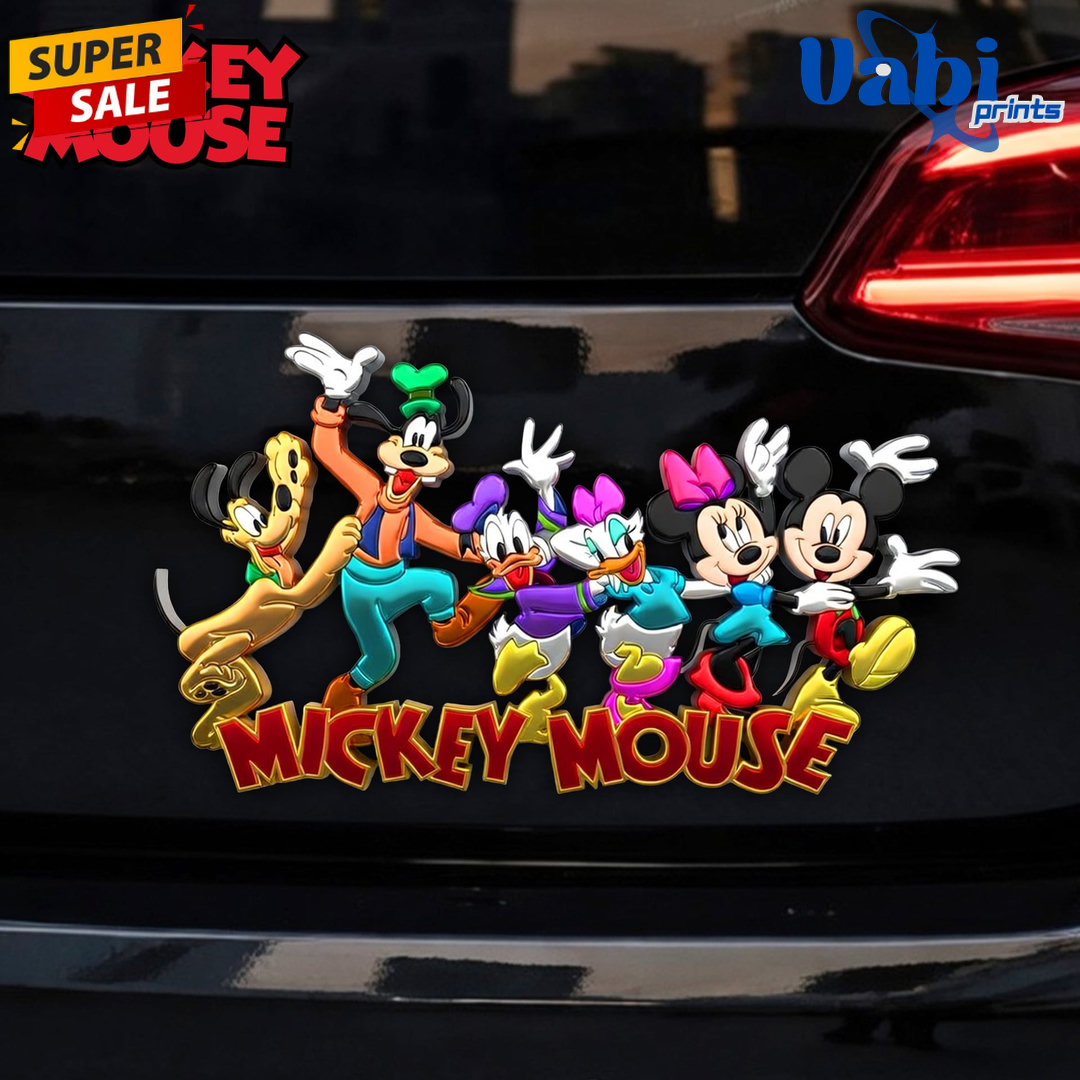 This vibrant 3D emblem features Mickey Mouse and his iconic friends — Pluto, Goofy, Donald Duck, Daisy, and Minnie — in a fun, colorful group pose. Finished with the classic “MICKEY MOUSE” logo in bold red and yellow lettering, it brings instant Disney charm to your vehicle.