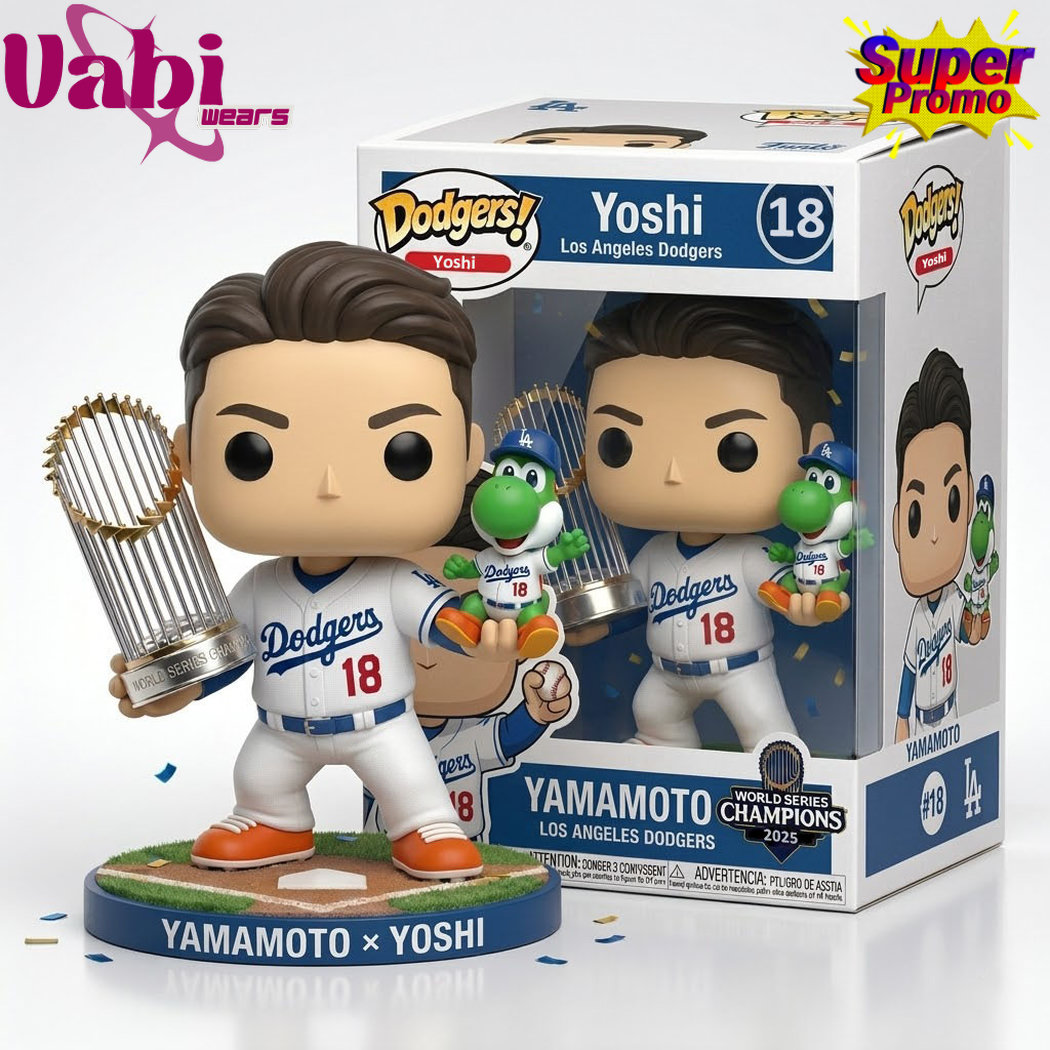 Celebrate the Los Angeles Dodgers’ historic championship win with the Yamamoto × Yoshi LA Dodgers World Champions Series Collectible Pop! Figure. This limited-edition figure perfectly encapsulates the spirit and excitement of the Dodgers’ triumphant season. Standing at the iconic Pop! vinyl height, this figure features a vibrant design, showcasing the team’s classic blue and white colors along with intricate detailing that pays homage to their rich history. Whether you’re a die-hard fan or a collector of unique memorabilia, this figure makes for an eye-catching display piece that will enhance any collection. Encased in a collector-friendly box, it’s ideal for gifting or showcasing on your shelf. Don’t miss your chance to own a piece of Dodgers history—celebrate their victory in style with this exclusive Pop! figure, a must-have for fans and collectors alike!